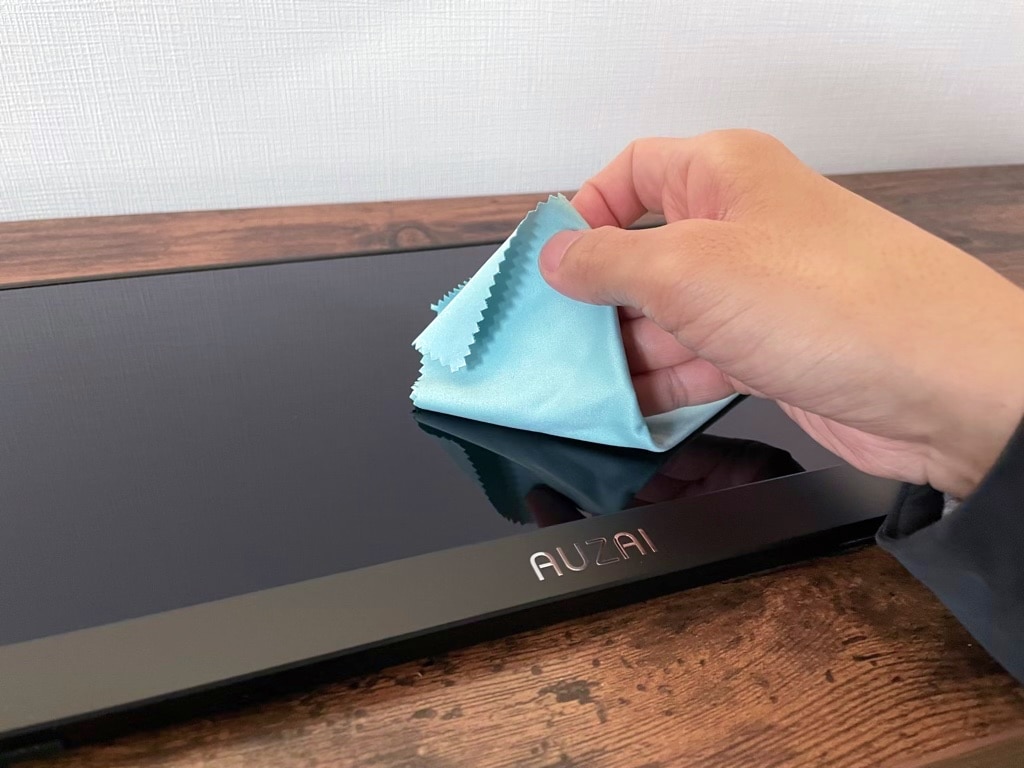 ▼指紋汚れを防ぐための保護フィルムとマイクロファイバーもセットなのは、嬉しいね。