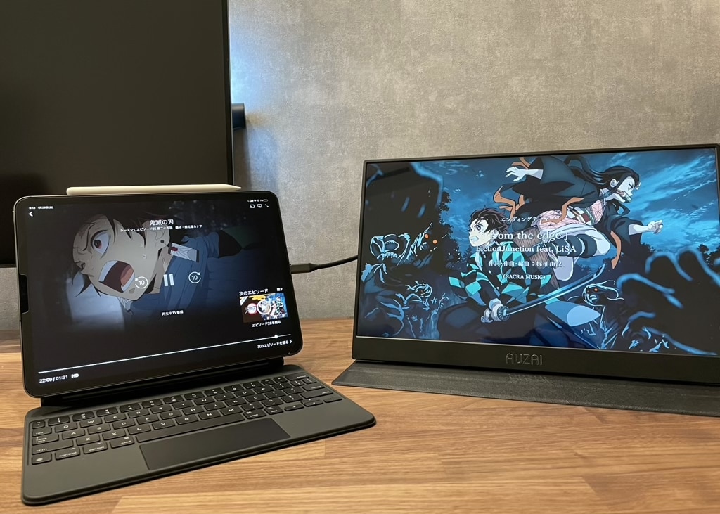 また、プライムビデオなどの動画を再生すると、モバイルモニターのみで再生されます。