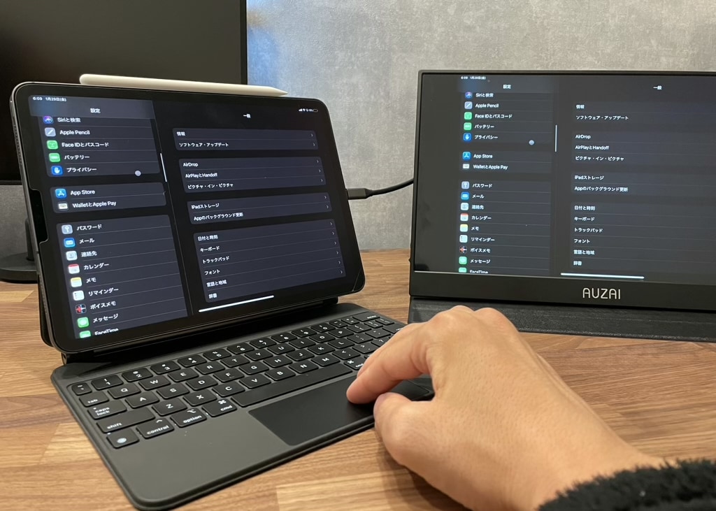 iPad Proで接続する場合も、USB-Cケーブル1本だけで使えます。基本的には画面がミラーリングされて、iPadと同じ内容が表示されます。