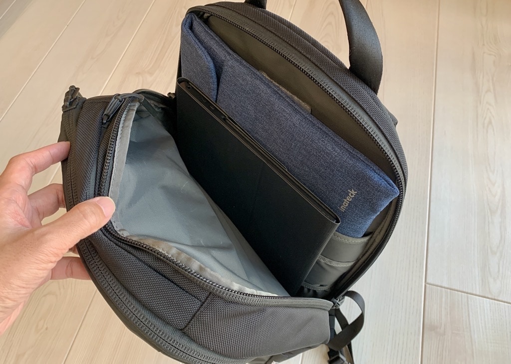 保護ケース付きなので、そのまま、いつも使ってるバックパックに入れてます。