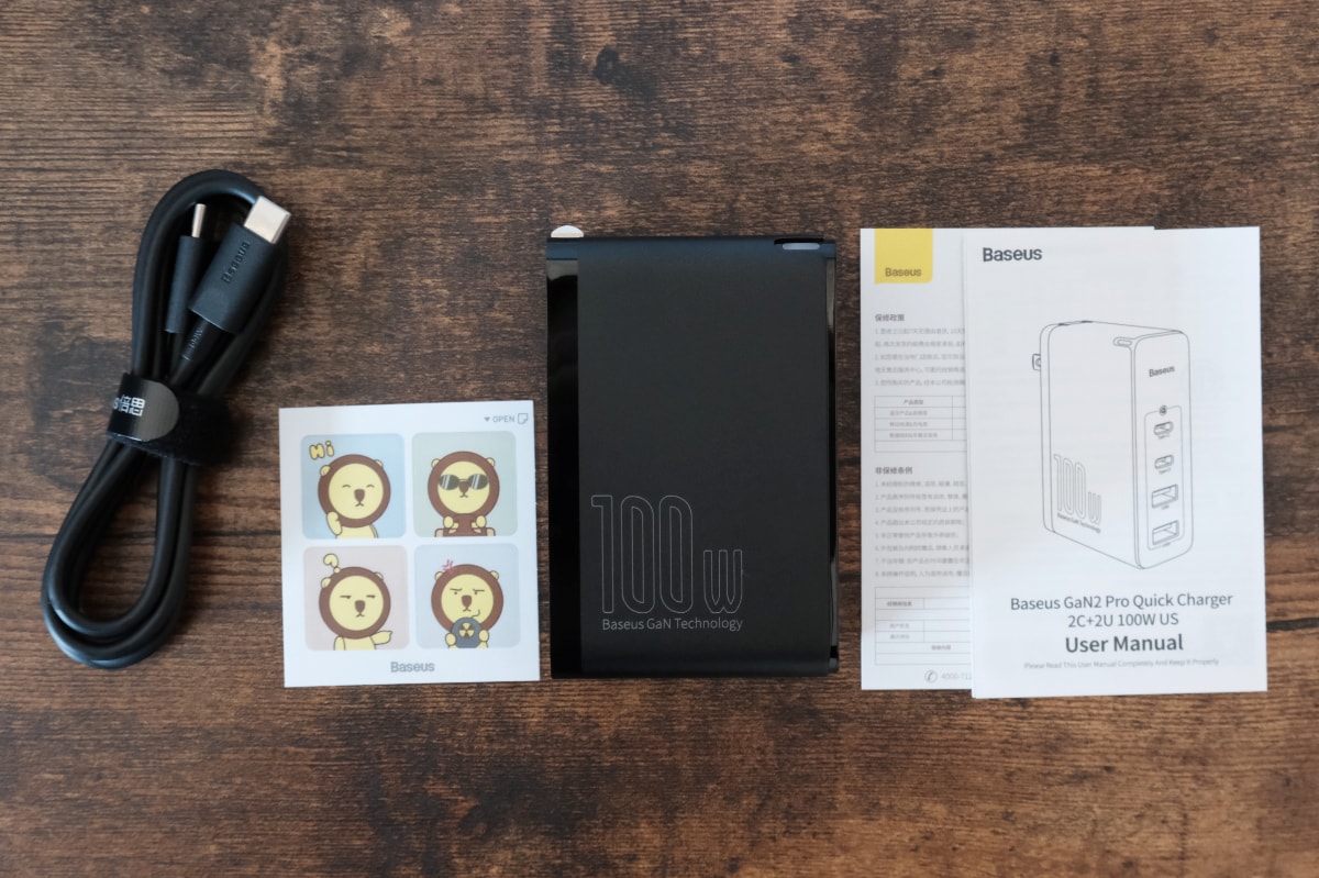 4ポート充電器「Baseus 100W GaN2Pro」の外観と付属品