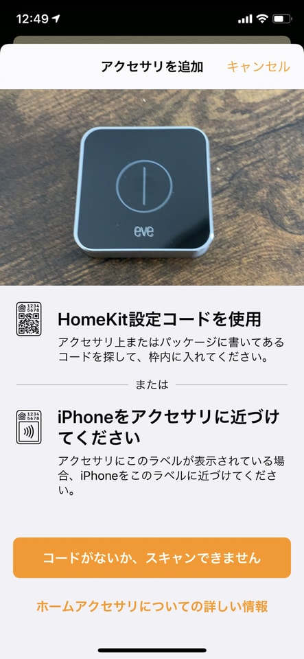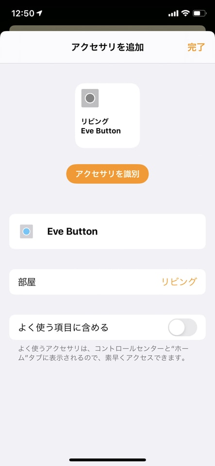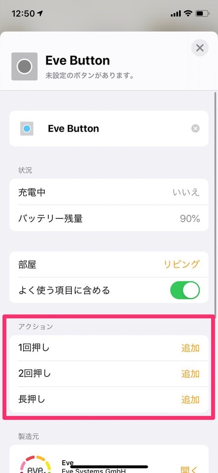 では、Eve Buttonをホームアプリに追加します。