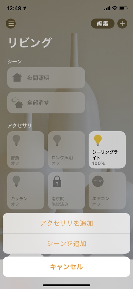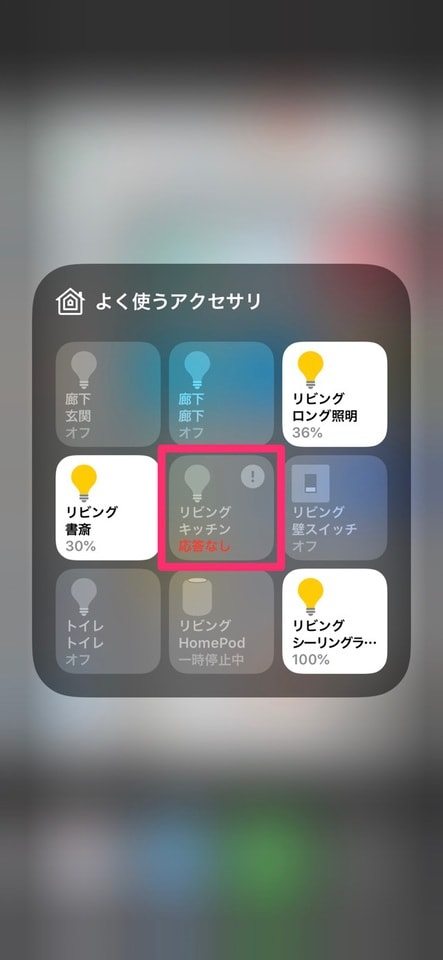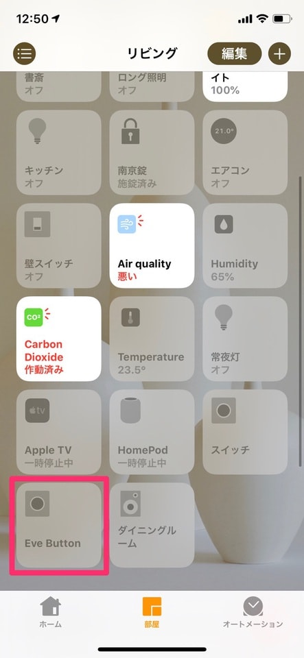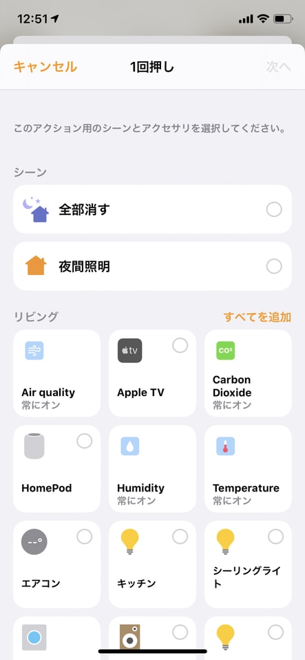 当たり前ですが、ボタンを押して動かすHomeKit製品が1つもなければ、ただのボタンになります。