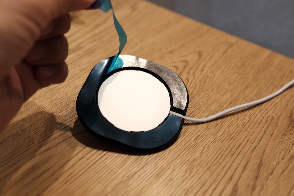 Mag Fitは、MagSafe充電器を机の上に固定し、「ズレない」「傷付かない」充電ベースを作ることができるアイテム。底面には、長時間固定できて綺麗に剥がせる特殊素材により、滑りやすいテーブル上でも安心して使えるのが特徴です。