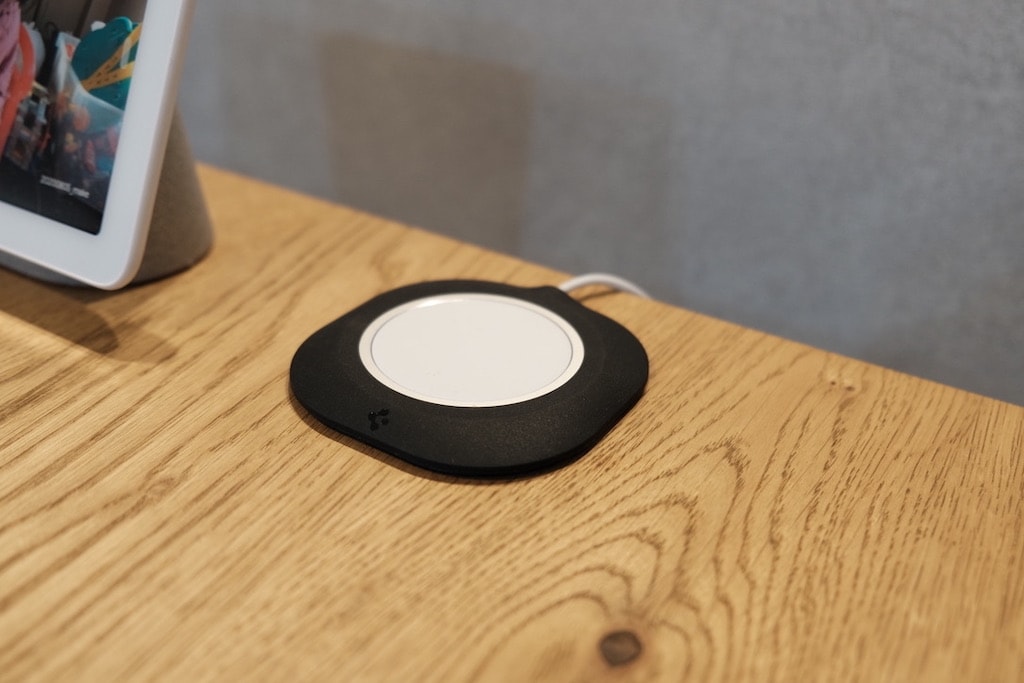 Spigenの高品質なアイテムで、MagSafeがそのまま置いてあるよりも、見栄えが良いです。MagSafe充電器を使う場所が決まってる人に、おすすめなアイテムでした。