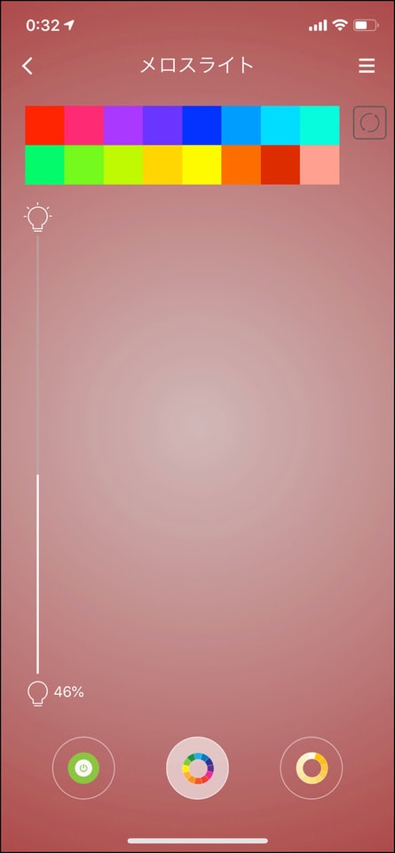 画面下の真ん中のアイコンを選ぶと、マルチカラーの調光・調色ができるパレットになります。操作方法は白系と同じです。