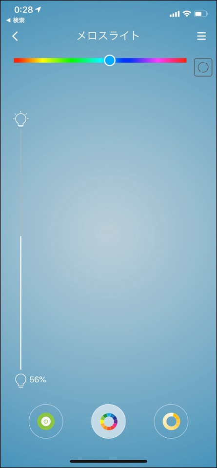 画面下の一番右のアイコンを選ぶと、白系カラーの調光・調色ができるパレットになります。