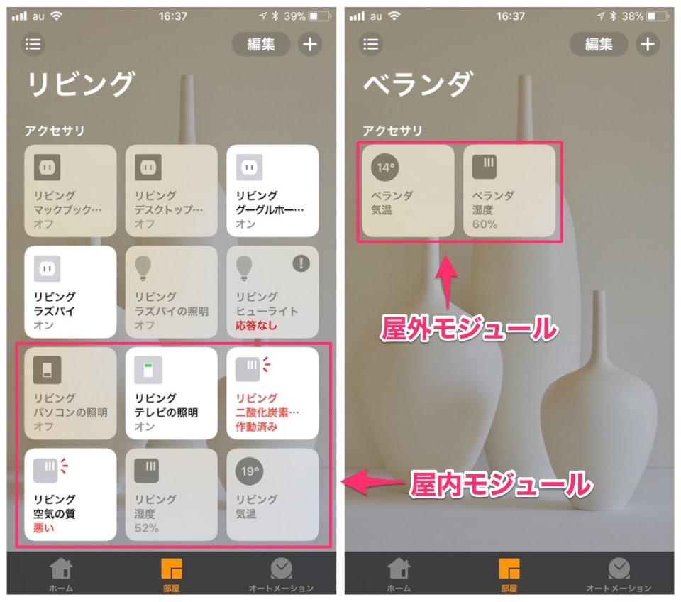 ちなみに、オートメーションでセンサーをトリガーとして使いたいなら「Hesperus」アプリを使うと気温や湿度センサーが使えます。
