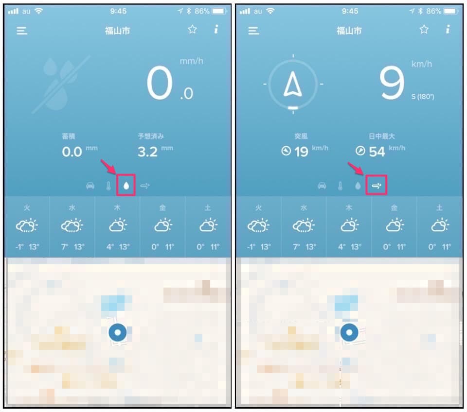 ▼天気予報をタップすると、天気予報をグラフ表示できます。