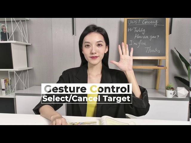 2軸のジンバルカメラで、ほぼ死角なしの自動追尾撮影が可能です。また、ジェスチャーで自動追尾をON/OFFしたり、顔をアップにしたりできます。