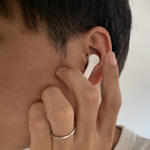 PINOは、イヤホンを取って、耳への挿入までがスムーズです。また、デバイスとの接続スピードも早いのですぐに音楽再生が開始できます。