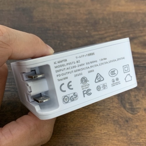 3台をフルスピードで充電するには30w以上の充電器が必要ですが、付属の充電器は60w出力タイプ。MacBookやiPad Proにも使える出力です。