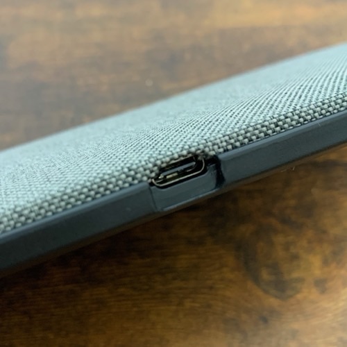 ▼側面にはメーカータグとUSB-C端子がそれぞれあります。