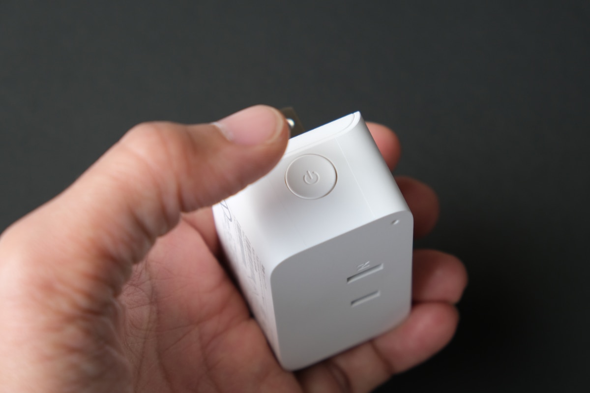 また、スマートプラグは手動でも操作できるように電源ボタンが備わってます。