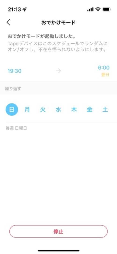 Tapo P105の面白い機能に「お出かけモード」があります。これは指定時間の間、ランダムで電源操作して留守を悟られない機能です。