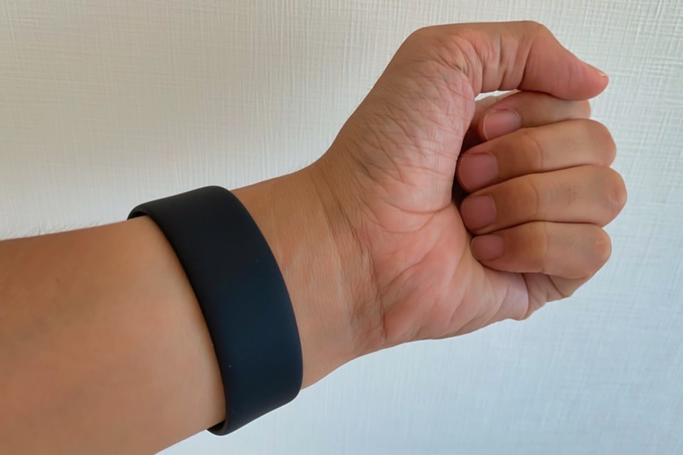 ▼スポーツバンドと比べると、スッキリとした見た目で、柔らかくてバンドが伸びやすい。