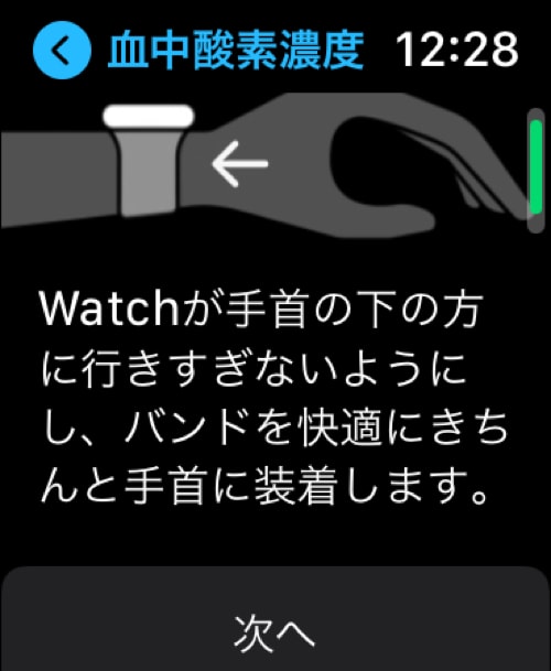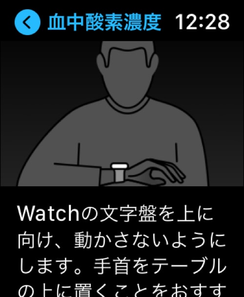 上手く計測するためには、手首をテーブルや膝に置き、文字盤を上に向ける必要がある。